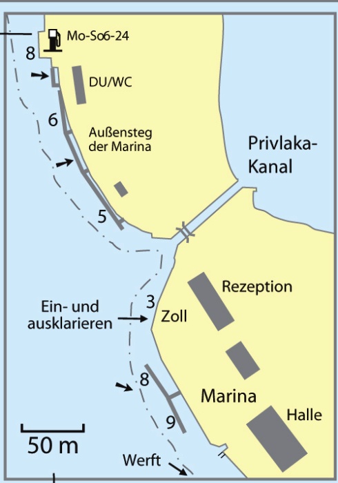 In the port of the City of Mali Lošinj , located on the coordinates 44 32.0'N 14 18.0'E the Y/C company Marina d.o.o. is situated, to render nautical and tourist services. It is open for public with all the necessary concessions issued by the county port administration Mali Lošinj. The port of Mali Lošinj is at the disposal for a year-around reception of ships and yachts, equipped with the modernized pontoon berth, additionally protected, since the year 2006, with an existing floating jetty. The port offers berth services for 110 vessels up to 30 m length. The reception and berth services are rendered in the remaining part of the port, foreseen for larger ships and mega-yachts and for regular ship lines, as well.