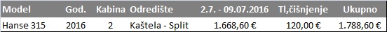 Model možete unajmiti za sada samo iz Splita. Objavljujemo ponudu za prvi tjedan srpnja, ostale termine nudimo na upit: