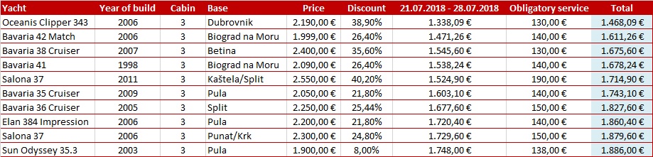 10 najpovoljnijih jedrilica s 3 kabine za 21-28/07