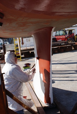 Priprema za antivegetativni premaz. | "Prva ruka" antivegetativnog premaza. |