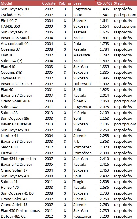 Jedrilice s 3 kabine koje su još raspoložive za termin 01-08/08:
