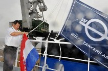 U svečarskoj atmosferi na komandnom mostu »Palanca Sydneya« jučer je u »3. maju« obavljena primopredaja novog asfalt-tankera Šveđanima iz Wisby Tankersa. Isporuka svakog novog broda veseli, no ono što baca sjenu na događaj u riječkom brodogradilištu jest činjenica da je riječ o pretposljednjoj novogradnji iz trećemajske knjige narudžbi, a po svemu sudeći ni narednih nekoliko mjeseci situacija po tom pitanju neće se promjeniti. Predsjednik Uprave »3. maja« Edi Kučan iskoristio je priliku da podsjeti kako je sa istim švedskim klijentom u ovom trenutku osnažen posao na gradnji 18 barži, koje će se izgraditi do konca ove godine, a posebno je apostrofirao činjenicu da bi se u dogledno vrijeme moglo raditi o »paketu« od čak 60 barži sveukupno, nosivosti 2.500 dwt-a.