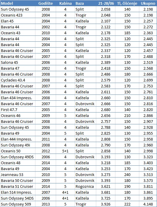 Ponuda jedrilica s 4 i 5 kabine iz Splita i okolice za popularni termin 21-28/06: