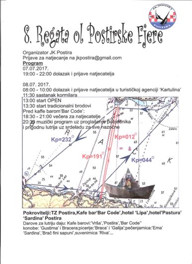 7.1.Predviđeno je navigacijsko jedrenje u subotu 08.srpnja '17 na relaciji Postira-Omiš- Dugi rat - Supetar - Postira u dužini 17 NM sa startom u 1300 sati.