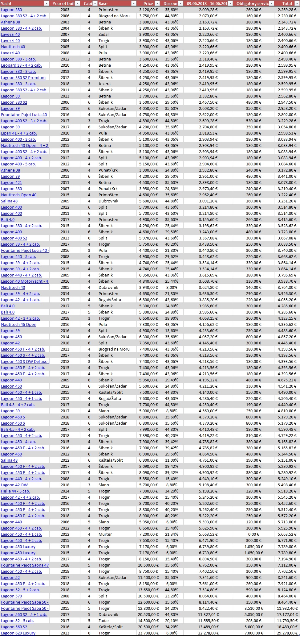 Strašno. Radi s Lagoonu 560 iz Dubrovnika - umjesto 20.520 eura samo 11.327,04 eura. To je samo cijana najma broda i ona ne uključuje posadu i APA.
