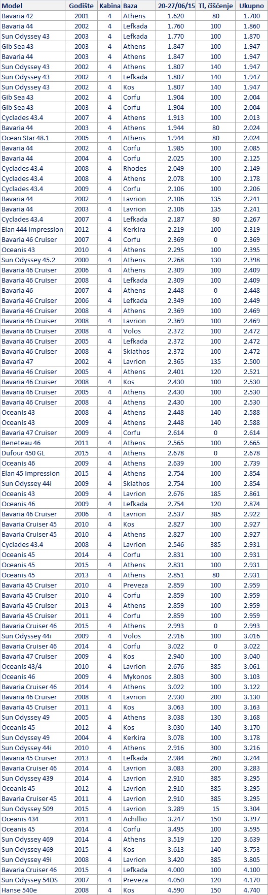 Ponuda charter jedrilica s 4 kabine iz Grčke za termin 20-27/06/15: