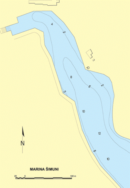 ACI Marina Šimuni liegt in einer Bucht im westlichen Teil der Šimuni-Bucht im Maunski Kanal.