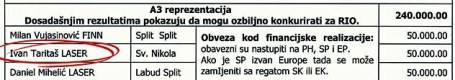 Stvar se, međutim, drastično promijenila na zadnjem sastanku Izvršnog odbora u Zagrebu prije dva dana kada je, kako doznajemo, Zlatko Taritaš kazao kako Ivan ipak neće koristiti namijenjena sredstva za ovu godinu jer iz klase laser prelazi u klasu finn! Zanimljivo kako su se toga u obitelji Taritaš sjetili tek sada, kada su sinu dodijelili 50 tisuća kuna i ostavili mu da odluči, bez pritiska, pa što Ivan kaže.