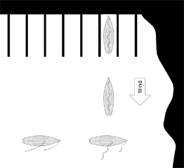 - Sobald der Steg querab liegt, ruft der Steuermann "Alle Schoten los!", löst die Schoten und dreht das Boot unverzüglich in