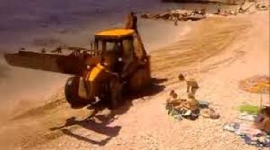 Kupači koji su jučer ujutro došli na plažu Indije u Banjolama ostali su šokirani iznenadnom pojavom bagera koji je, na čuđenje svih, počeo "uređivati" šljunčanu plažu.