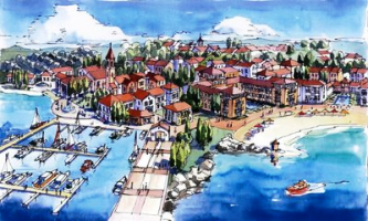 Projekt tog turističkog naselja na prostoru bivše cementare, na južnom ulazu u Umag, zamišljen je još prije 20-ak godina, kada je Tvornici cementa počelo nestajati sirovine za rad. U srpnju 1994. ugašena je peć, a meljava cementa zaustavljena je u svibnju 2005. Tada je službeno stala proizvodnja u tvornici. Cijelo to vrijeme rušeni su objekti, što je konačno dovršeno prije pet godina, kada je uklonjen zadnji - hala sušara.