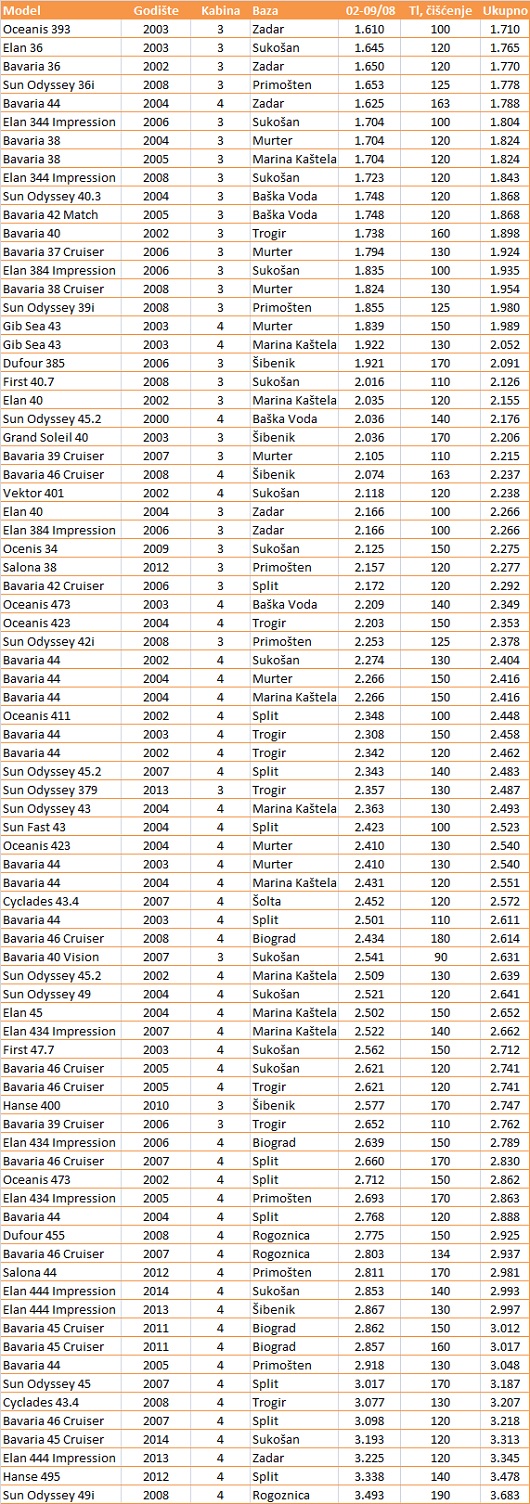 Izbor iz doista bogate ponude brodova s 3 ili 4 kabine za udarni termin 02-09/08: