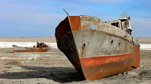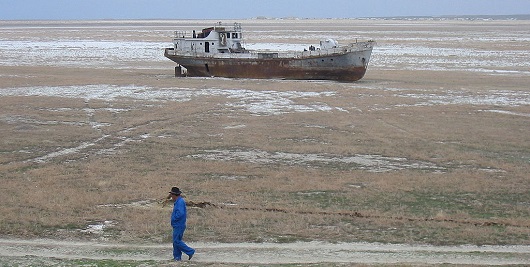 To je jedna od najdramatičnijih promjena Zemljine površine u nekoliko stoljeća.Brodovi u pijeskuU Hodžabajevu selu Žalanašu u Kazahstanu, koje je nekoć bilo na sjevernoj obali Aralskog jezera, vode više nema na vidiku. Uokolo je samo smeđa zemlja i pijesak.1024px-Aralship2Aral - život u iščekivanju da pustinja opet bude voda"Tu je bila voda. Ovdje smo skakali i ronili. Točno gdje sad stojimo. Tu iza je bila plaža", rekao je Hodžabaj reporteru BBC-ja.Hodžabaju je 86 godina i oči ga izdaju, ali na obzoru prepoznaje tri crne točke, jedan od podsjetnika na to kako je nekada bilo.Svaka točka olupina je velikoga ribarskog broda, nasukanoga i napuštenoga, koja sada samo zvecka na vjetru. Iza obzora još su stotine takvih."Bio je to velik brod, mogao je primiti od 20 do 40 ljudi", kaže Hodžabaj.