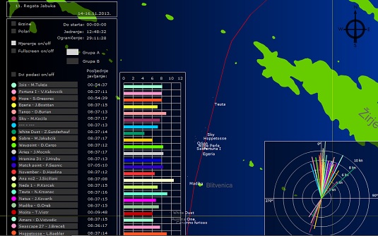 U tijeku je najduža odobalna regata - JABUKA. Trenutno u vodstvu Comet 45S "Teuta". Trenutna brzina oko 9 milja na sat, prošli su Blitvenicu i približavaju se Žirju. Ekipa Dobrog Mora se drži dobro - cca. 20 mjesto. Više informacija na http://www.vodice.net/tijat/jabuka_live_tracking.asp