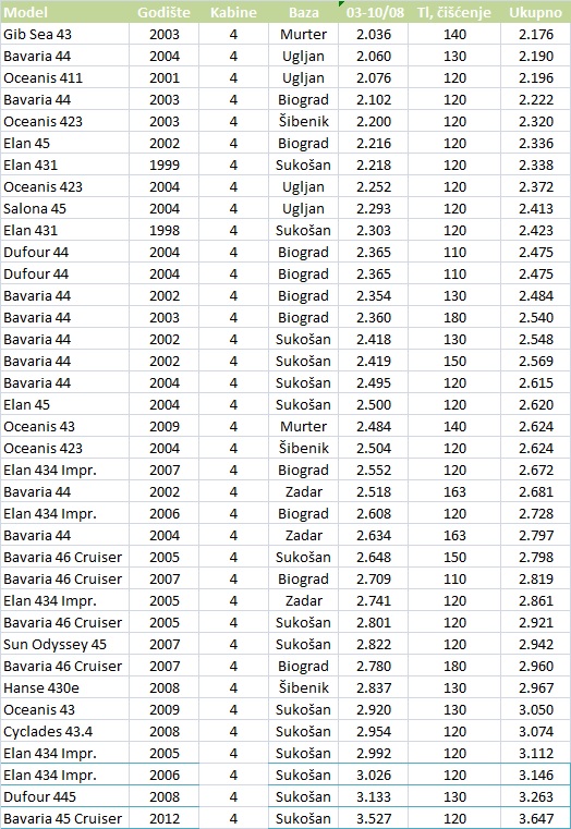 Charter: 4 kabine od 03-10/08 akvatorij Kornata