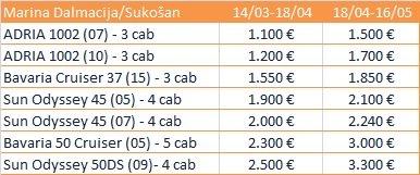 Brodovi se nalaze u Marini Dalmacija u Sukošanu. Ova akcija vrijedi do 01.01.2015.