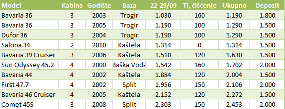 Jedna od zadnjih last minute ponuda u ovoj sezoni, termin 22-29/09 i 30-tak plovila iz 3 akvatorija: