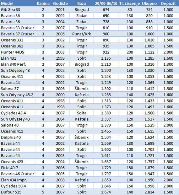 Izbor iz last minute ponude charter jedrilica za termin 29/09-06/10: