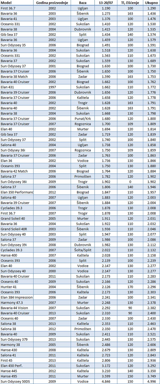 Sedamdesetak charter jedrilica s 3 kabine u ponudi za 13-20/07: