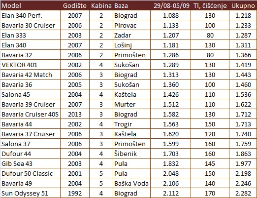 Cijene u ponudi su izražene u eurima. Za plaćanje u kunama se obračunava prema srednjem tečaju HNBa na dan uplate. Završno čišćenje i transit log su uključeni u cijenu. Osim toga, potrebno je platiti boravišnu pristojbu 7 kuna/po danu/po osobi. Sigurnosni depozit se može se položiti u slipovima kreditnih kartica ili u gotovini.