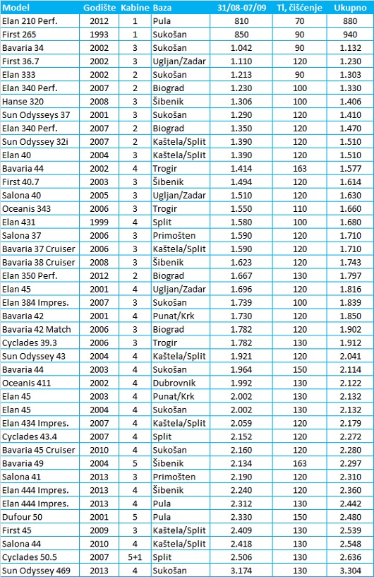 Aktualna ponuda raspoloživih brodova za sljedeću subotu: