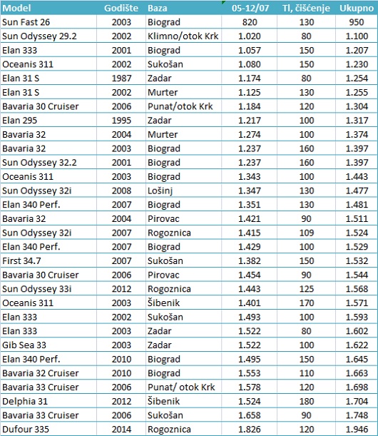 Pregled ponude manjih jedrilica za prvi tjedan srpnja 2014.