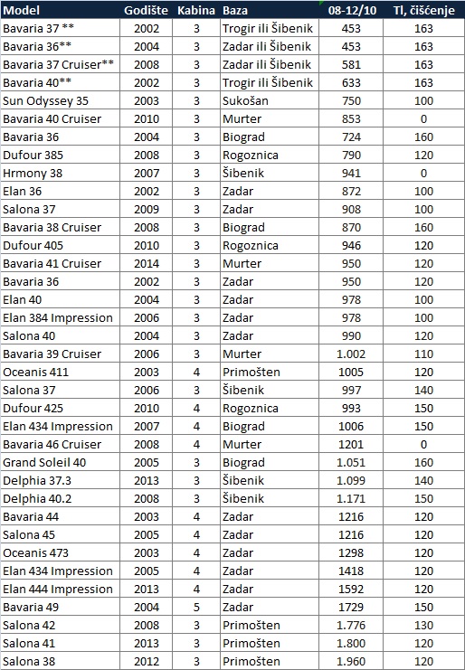 Charter ponuda za termin 08-12/10, srijeda do nedjelje 5 dana: