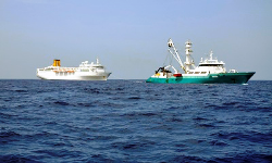 Nakon promjene rute dva tegljača sada vuku golemi putnički brod prema Maheu, glavnome otoku sejšelskog arhipelaga, kamo bi trebao stići u četvrtak.