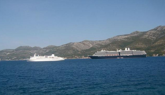 Nažalost, zbog jače tramuntane oba su broda morala potražiti sidrenje u Pelješkom kanalu, odakle su se putnici prevozili brodskim čamcima do korčulanske rive. Da nije bilo jačeg vjetra, kruzer "FTI Berlin" 140 m bi inače mogao pristati uz rivu, dok„Zuiderdam" nebi zbog velike dužine od 285 m, što već godinama upozorava da je Korčuli potrebna veća luka.