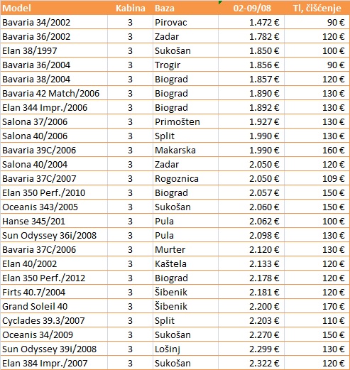 Brod do tri kabine u terminu od 02-09/08 iz akvatrija Kornata: