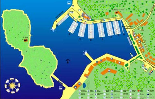 Die Marina ist unmittelbar durch die Insel St. Georg (Sv. Juraj) geschützt, auf der sich die gleichnamige romanische Kirche befindet. Die Marina, mit deren Bau man im Jahr 1996 begann, besitzt 200 Anlegeplätze im Meer und 40 Liegeplätze an Land. Die Tiefe der Fahrrinne und der Anlegeplätze von 7 bis 14 Meter ermöglicht eine Aufnahme von Jachten bis zu 50 Metern.