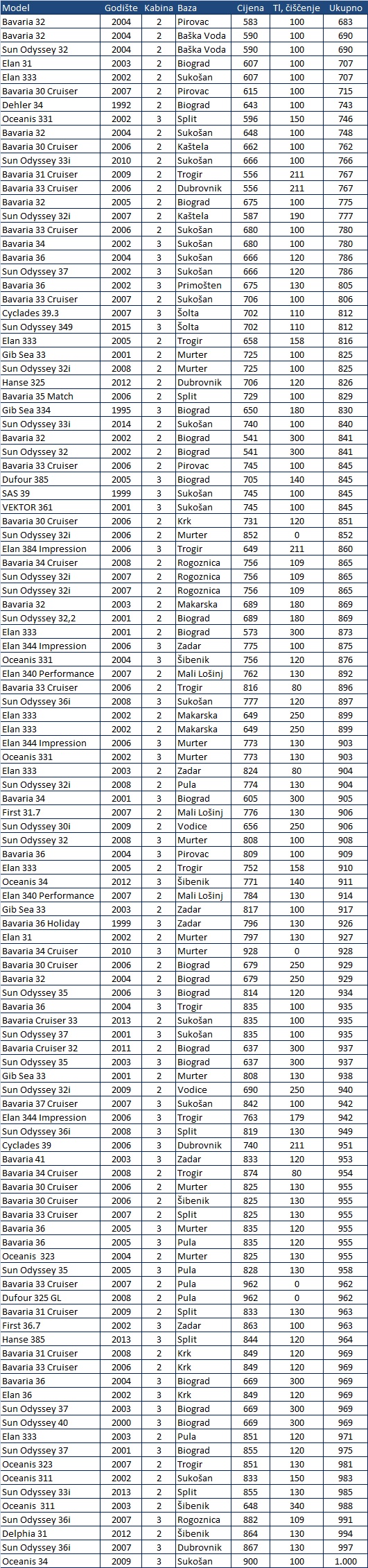 Ponuda raspoloživih brodova za tjedni termin koji uključuje i Praznik rada 01.05.2015..