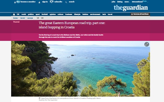 Ljepote Hrvatske opisane su u mnoštvu članaka ovog ljeta, a posljednji u nizu objavljen je u Guardianu. Njihov novinar Kevin Rushby krenuo je s obitelji na turneju po Balkanu i Baltiku, a prva stanica bila im je Hrvatska. Posjetili su hrvatske otoke i shvatili zašto svi toliko hvale Hrvatsku.