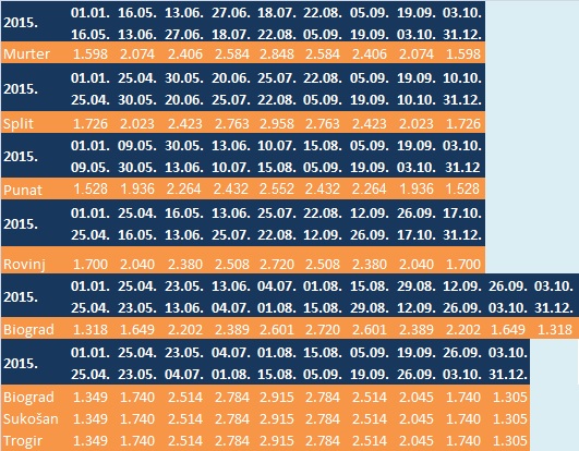 Najpovoljnija je iz Murtera 2.074 €, slijedi ona iz Biograda 2.202 €.