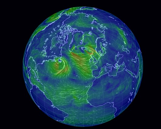 Interaktivni prikaz smjerova vjetra diljem svijeta stvara se putem skripte koja "skida" podatke o vremenu s globalnog sustava za prognozu vremena. Ti se podaci tada prikazuju u formu u kojoj vi možete "putovati" diljem svijeta te uvećavati i smanjivati prikaz, piše TreeHugger.