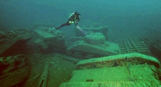 Američki tenkovi „sherman" iz Drugog svjetskog rata, koji se tamo nalaze, bili su dio pošiljke naoružanja savezničkim trupama u Europi pred kraj najvećeg sukoba u povijesti čovječanstva. „Shermani" su na dnu završili nakon što je 8. rujna 1944. godine njemačka podmornica torpedirala brod „SS Empire Heritage". Tada je poginulo 133 osobe.