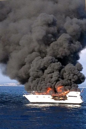 U 18.25 sati s policijskog plovila javljeno je da je opožarena motorna jahta potonula.