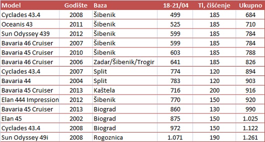 Ponuda se odnosi na termin od petka ujutro do ponedjeljka poslijepodne, sve jedrilice imaju 4 kabine: