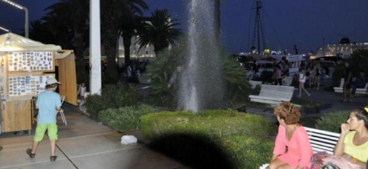 Što se dogodi kada se netko nelegalno spoji na vodu? Nagrabusi uvijek netko treći. Jedan naš čitatelj uhvatio je proteklog vikenda u svom objektivu pomalo bizarnu situaciju u kojoj se nekolicina naših sugrađana neplanski osvježila na Rivi, jer su se zatekli u blizini vodoskoka koji je posljedica nelegalnog priključivanja turističkih brodica na vodu.