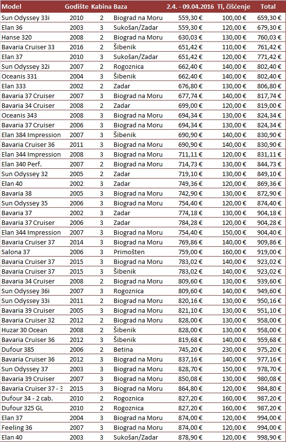 Uz priču o Maritimu za prave jedriličare nudimo charter brodove za prvi tjedan u travnju. Obično je u to doba godine ima dosta vjetra a i cijene najma brodova su najniže.