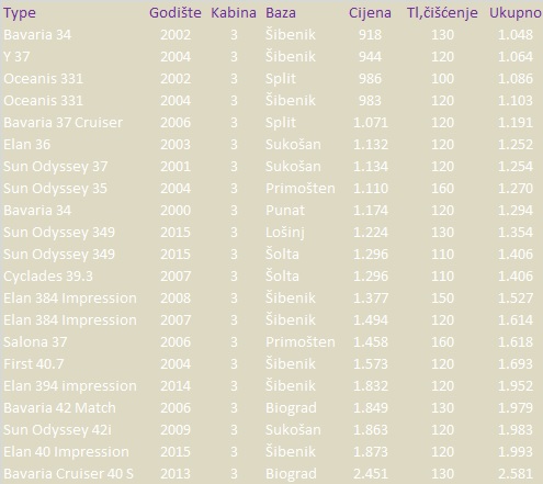 Ponuda raspoloživih jedrilica s 3 kabine za Tijelovo. Za sada još u tjednom terminu - 30.05-06.06.