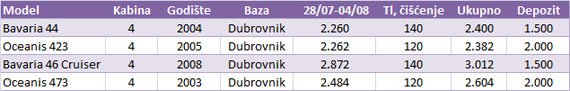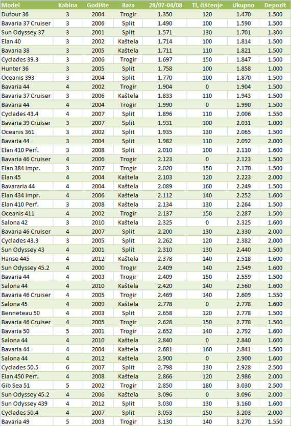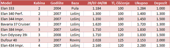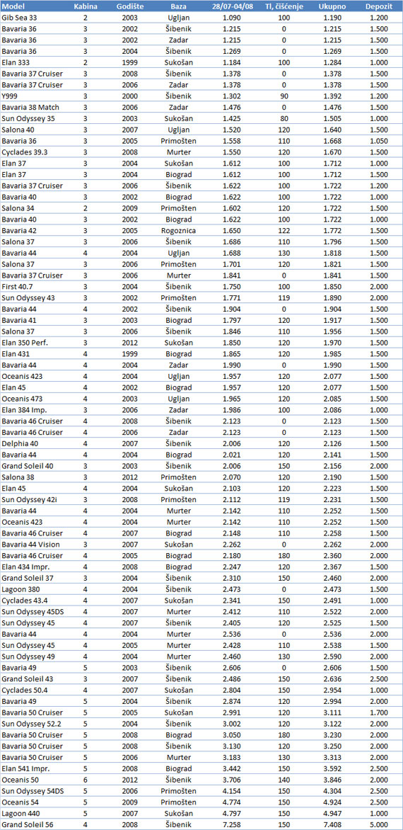 - u većini slučajeva ne možete birati model plovila tj. birate između još raspoloživih plovilo isto vrijedi i za polaznu luku