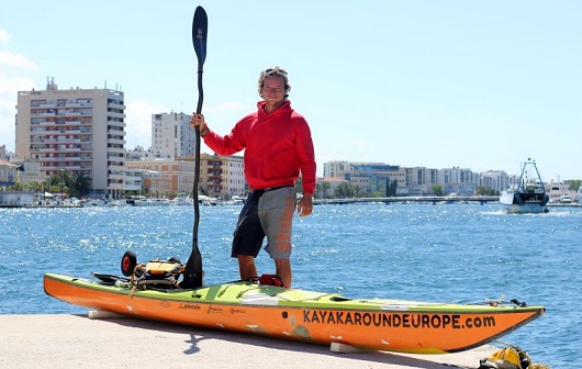 Jiri Oliva, 28-godišnjak iz Češke, prije godinu dana uputio se s kajakom na putovanje života. Za stići do Zadra bilo mu je potrebno šest tisuća kilometara, a nakon toga grada čeka ga još 14 tisuća. Kada ne vesla kajak, svog narančastog suputnika od 100 kilograma gura na kotačima. I tako iz zemlje u zemlju.