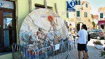 - Na mozaiku sam prikazao Isusa koji silazi s križa i dolazi kornatskoj obitelji - mužu ženi i njihovih troje djece. To je mala pastorala u tipično mojoj stilizaciji obasjana nebeskom svjetlošću - kaže slikar kojemu je u ovom poslu pomagao murterski pjesnik i slikar samouk Ive Šikić Balara.