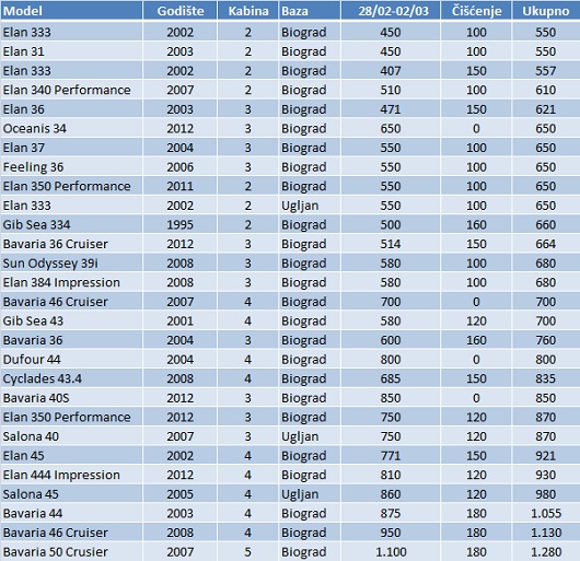 Izbor brodova koje možete unajmiti za regatu: