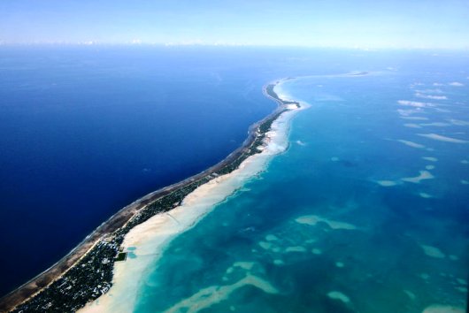 Većina žitelja Kiribata, njih 113 tisuća, nagurano ja na Tarawu, lanac otočića u obliku potkove između kojih se nalazi laguna. 'Moje je mjesto jako maleno', opisuje Aram administrativno središte države. 'Ako stanete u sredinu, s obje strane možete vidjeti vodu. Ranjivi smo. Jedan tsunami može nas u potpunosti uništiti.'