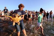 Ispratilo ih je stotine ljudi, najviše djece koja su, kao i svaki put dosad, poželjela kornjačama dobro zdravlje i sretan put. Prije puštanja u more, ispred pulskog Aquariuma za posjetitelje je održana kratka prezentacija Centra za oporavak morskih kornjača i predstavljen njihov rad.