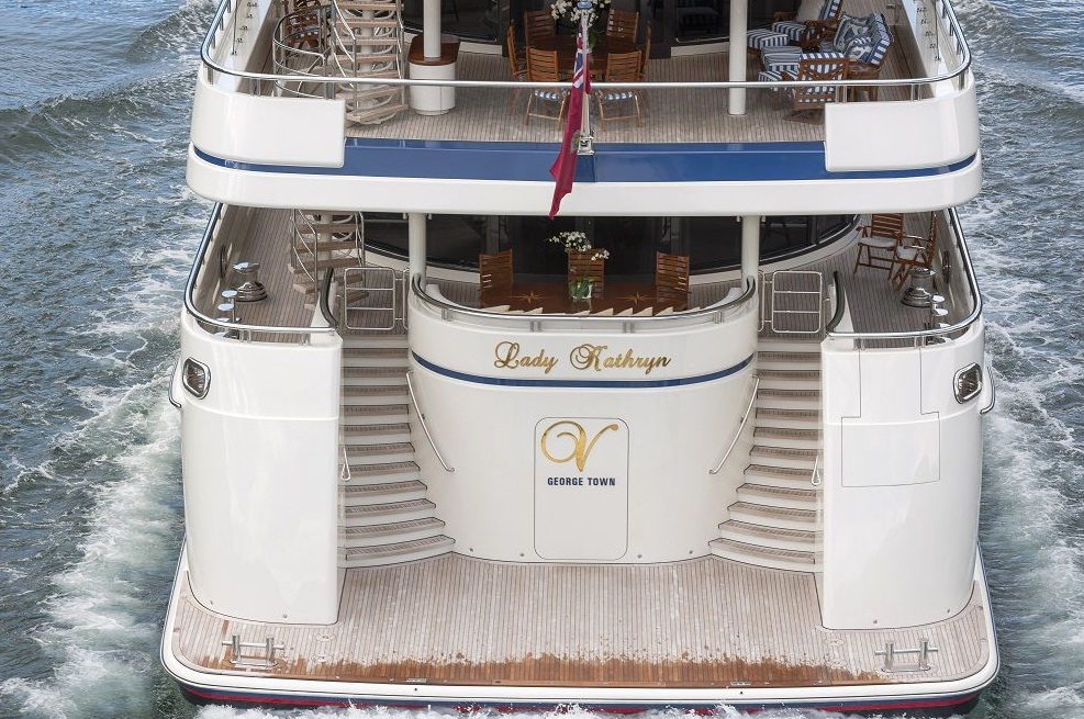 Proizvedena u njemačkom brodogradilištu Lűrssen, ova jahta svojim gostima nudi uživanje u 6 apartmana, kinu, sauni, jacuzziju, teretani te još mnogo drugih stvari. Lady Kathryn V moguće je iznajmiti za 450.000 eura tjedno.