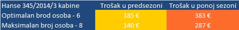 Novu Hanse 345 možete isprobati iz Marine Kaštela kod Splita ili iz Pule. Cijene tjednog najma za 2014. kreću se od minimalno 1.115 eura do maksimalnih cca. 2.300 eura.