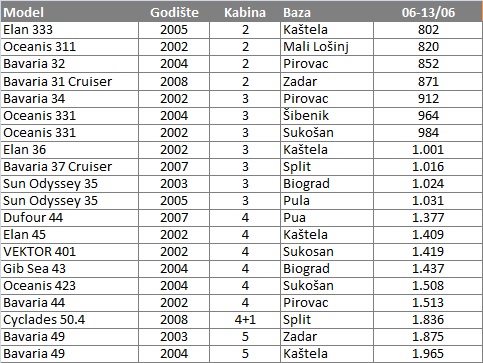 Cijene u ponudi su izražene u eurima. Za plaćanje u kunama se obračunava prema srednjem tečaju HNBa na dan uplate. Troškovi završnog čišćenja i transit log se u većini slučajeva plaćaju osoblju charter baze prilikom ukrcaja.